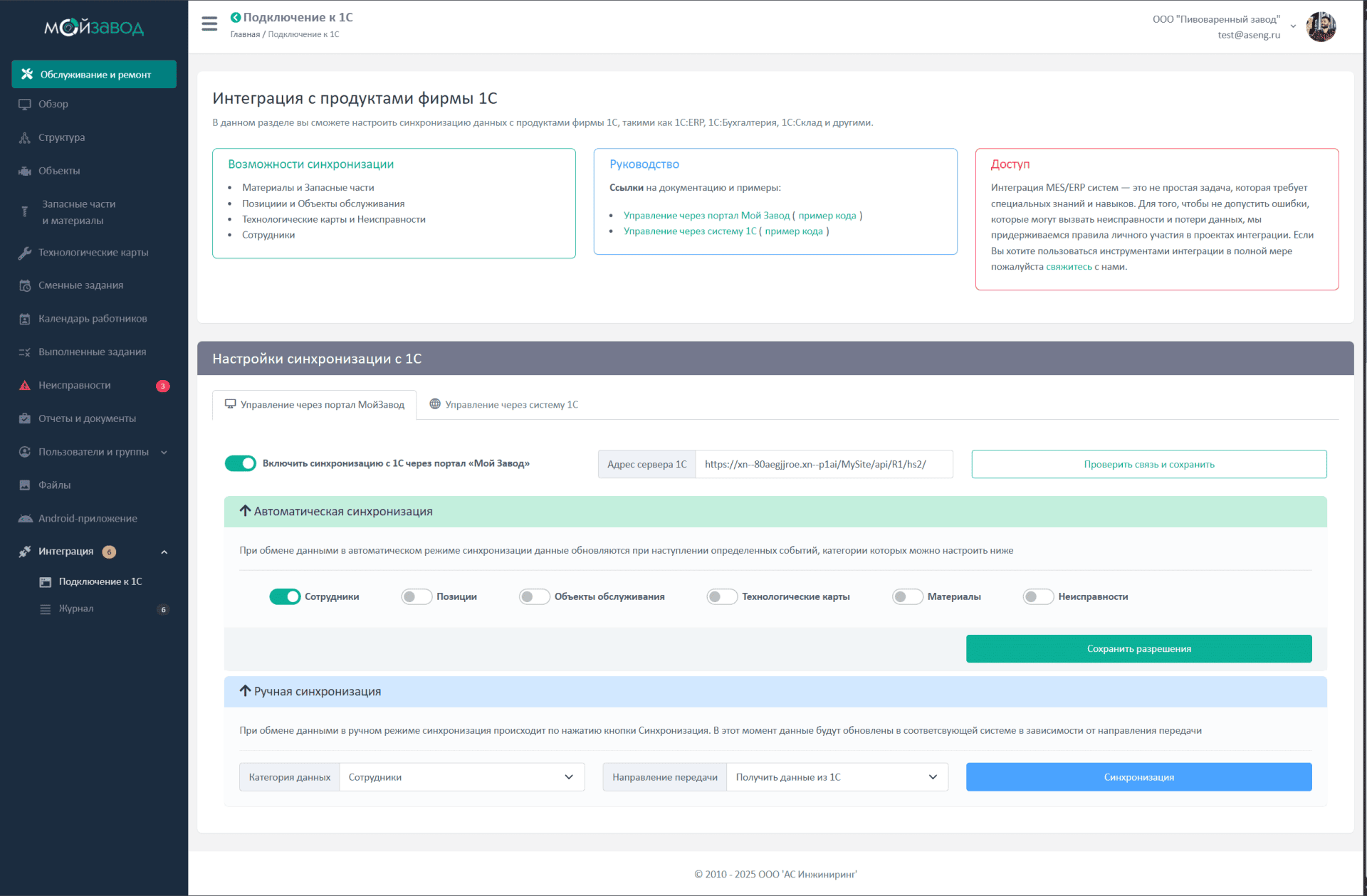 - Интеграция с внешними системами ERP, MES, WMS, АСУТП (OPC, Modbus, RabbitMQ)